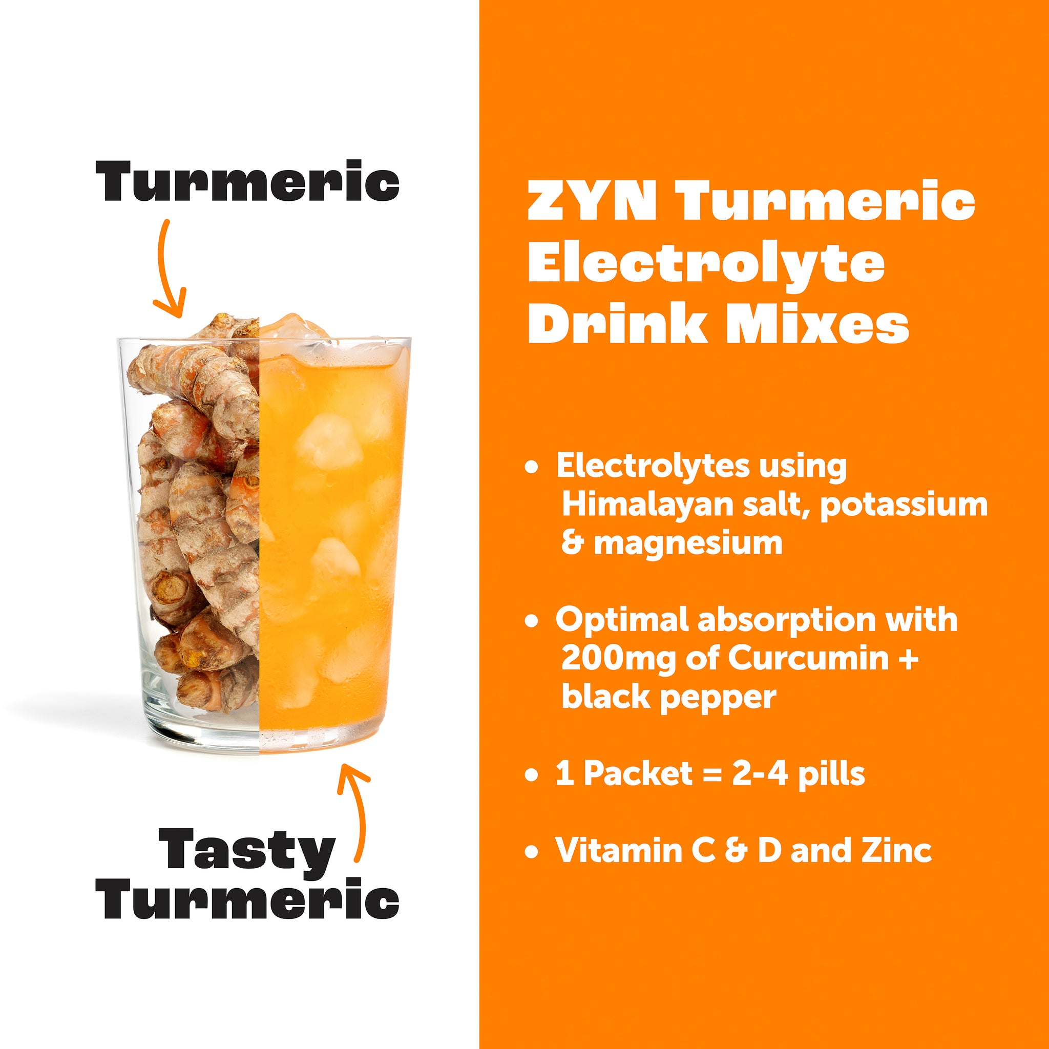 ZYN Electrolyte and Turmeric Drink Mixes are the solution for those who want to go beyond hydration. Enjoy the benefits of daily turmeric including reduced inflammation, rapid recovery from workouts, improved gut health, and an immunity boost.